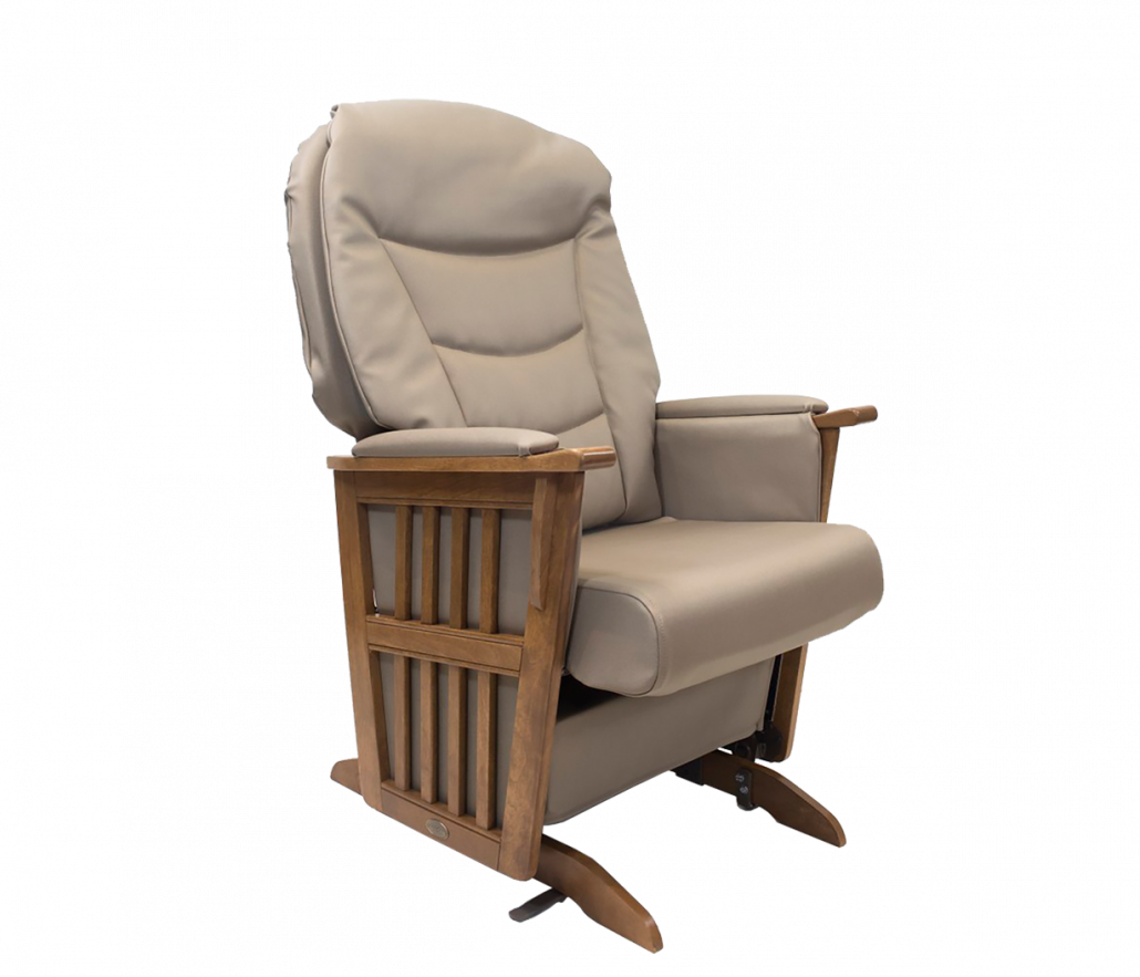 Le fauteuil Théraglide possède un mécanisme d’immobilisation breveté qui rend le fauteuil fixe lors de la levée et permet le bercement lorsque la personne est assise. Des appui-bras allongés pour une meilleure prise et des anti-bascules pour la stabilité sont des éléments de sécurité qui en font un fauteuil unique.